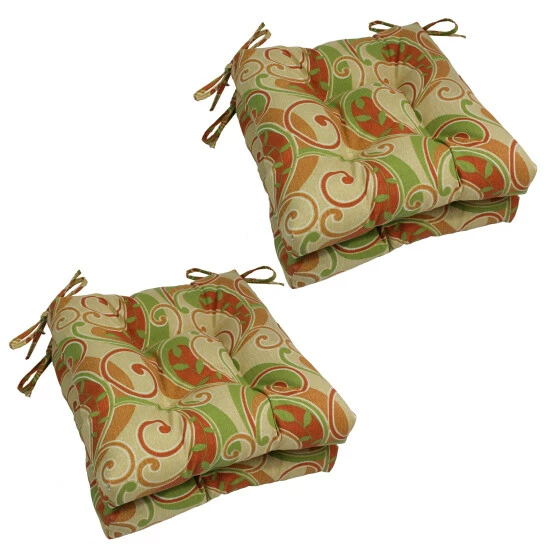 Brighten your indoor or outdoor furniture with these set of four 16-inch square tufted chair cushions from Blazing Needles Soft Home Furnishings. Constructed of UV and weather resistant outdoor fabric, the cushion’s colors stay bright, even when exposed to the elements. Four deep tufts ensure that the fill will not shift, and the 100-percent polyester fabric is easy to care for. Available in a range of floral and geometric patterns, these cushions coordinate well with both traditional and modern outdoor furnishings. Rejuvenate your deck furniture and enjoy comfortable seating for all your family and friends whenever you entertain them in indoor or outdoor settings.