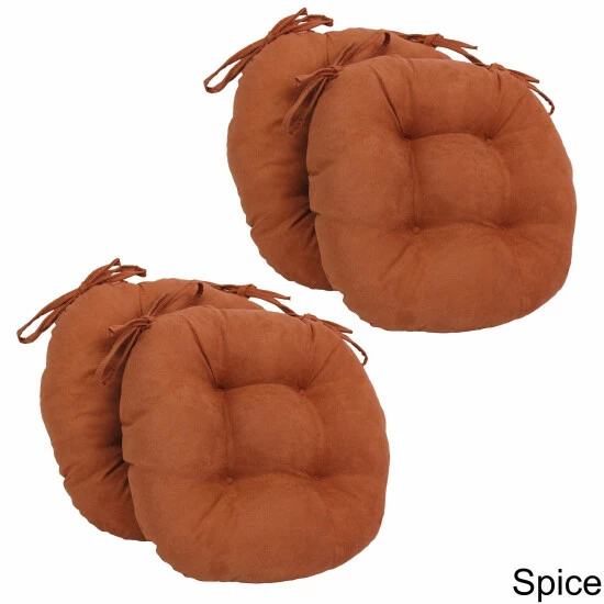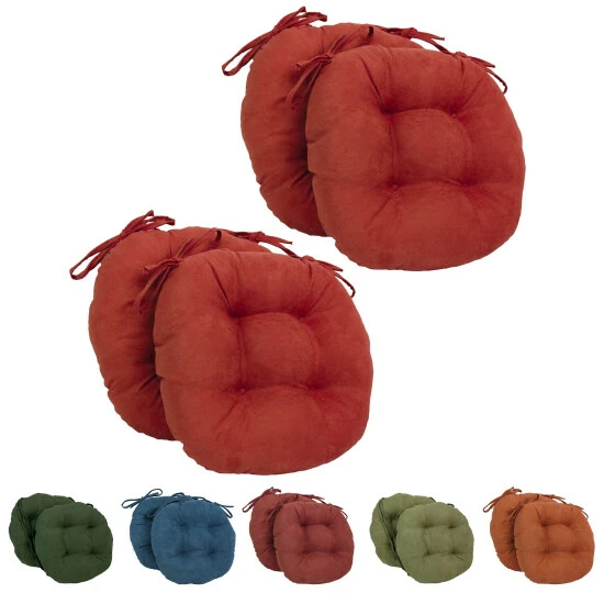 Add a touch of style and comfort to your indoor furnishings with these 16×16-inch round microsuede chair cushions, featuring a classic tufted cushion style and six varieties of solid microsuede fabric. Includes ties for easy fastening. ย