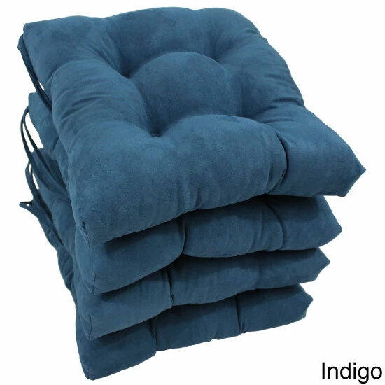 Add a touch of style and comfort to your indoor furnishings with this set of four 16-inch square dining chair cushions. These cushions feature a classic tufted cushion design and six varieties of solid microsuede fabric.
