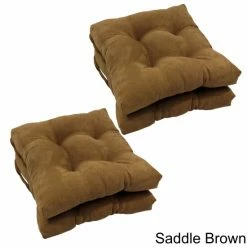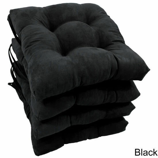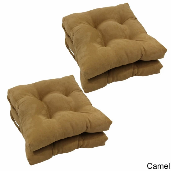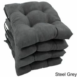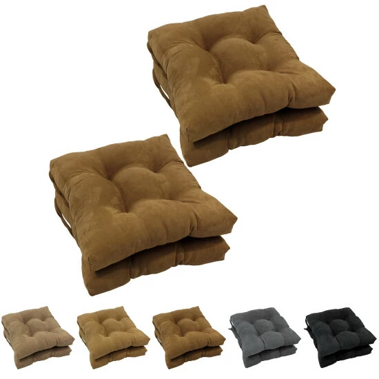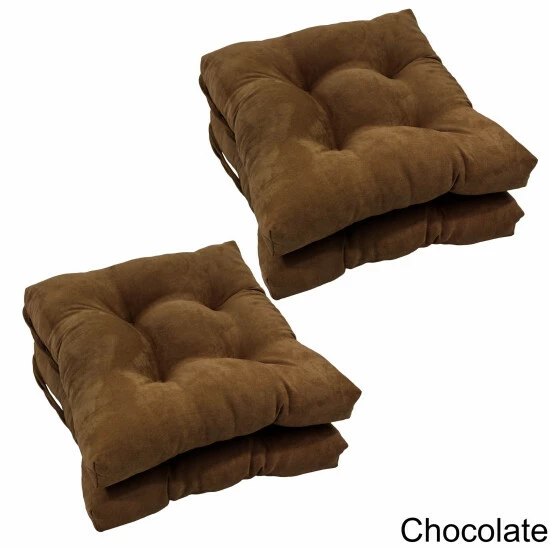 Add a touch of style and comfort to your indoor furnishings with this set of four 16-inch square dining chair cushions. These cushions feature a classic tufted cushion design and six varieties of solid microsuede fabric. Great for standard indoor chairs, and make a beautiful replacement for old cushions just sitting around the house. The Blazing Needles dining chair cushion is A upon ordering.