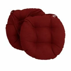Enhance the comfort of your chairs with this set of two cushions from Blazing Needles. Made from weather-resistant fabric with UV-protection, these cushions are perfect for your patio or garden chairs. Tie backs secure these cushions firmly on your chair to prevent shifting, and blown polyester filling ensures these cushions remain plush and cozy.