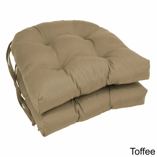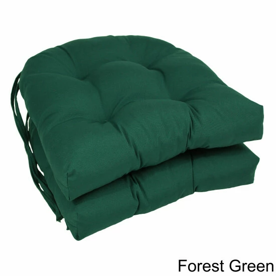 Improve the comfort of your wooden dining chairs by adding this pair of plump seat cushions. These U-shaped cushions have matching fabric ties in back that hold them securely in place, and the blown polyester filling provides firm support. The solid-colored twill fabric is a durable blend of 55-percent cotton and 45-percent polyester that’s easy to spot clean.