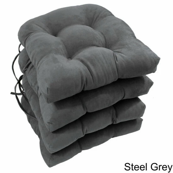 Let your tush sit in comfortable style with this four-piece cushion set. Wrapped in cozy microsuede upholstery, this U-shaped cushion set comes adorned with button tufting accents for a look that exudes casual elegance. Filled with blown polyester for extra plushness, this cushion set comes with ties for secure attachment.