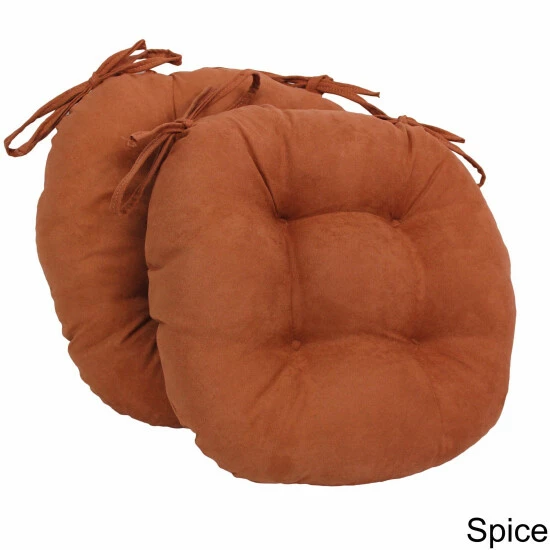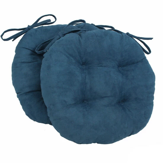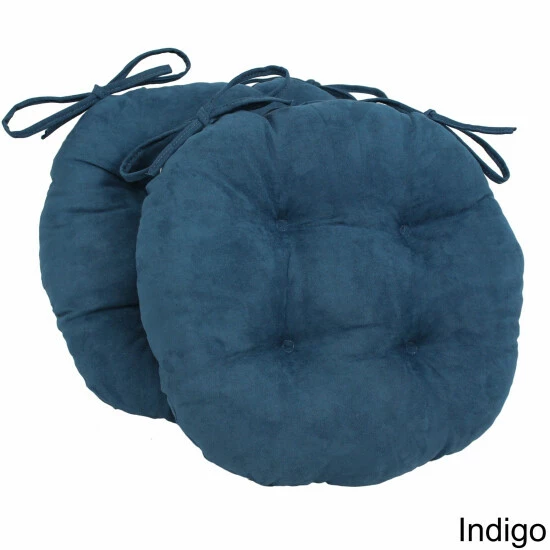 Tie these plush, tufted cushions onto your indoor dining chairs for a comfortable seating experience. Available in six bold colors, these round cushions are covered with a soft premium microsuede fabric. ย