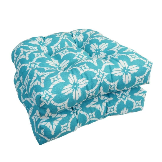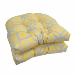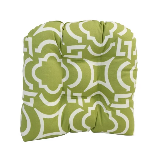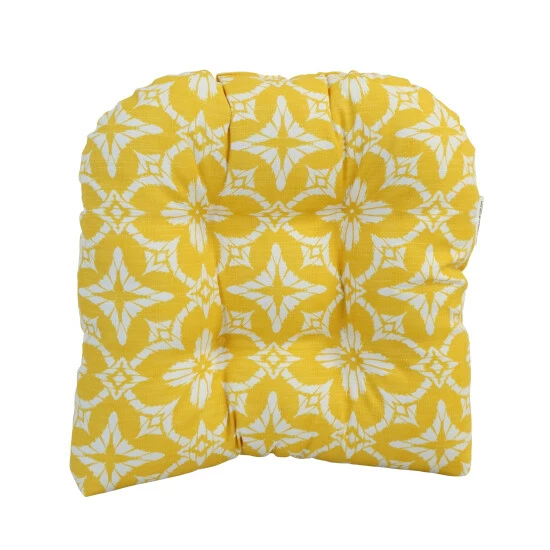Add a splash of color and style to your home furnishings with these chair cushions. These cushions feature a classic tufted cushion design and are available in a wide variety of striking patterns of UV and weather-resistant spun polyester outdoor fabric.