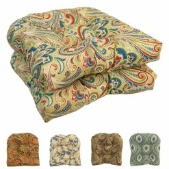 Add a splash of color and style to your home furnishings with these chair cushions. These cushions feature a classic tufted cushion design and are available in a wide variety of striking patterns of UV and weather-resistant spun polyester outdoor fabric.