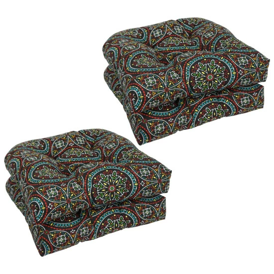 Add a splash of color and style to your home furnishings with these chair cushions. These cushions feature a classic tufted cushion design and are available in a wide variety of striking patterns of UV and weather-resistant spun polyester outdoor fabric.