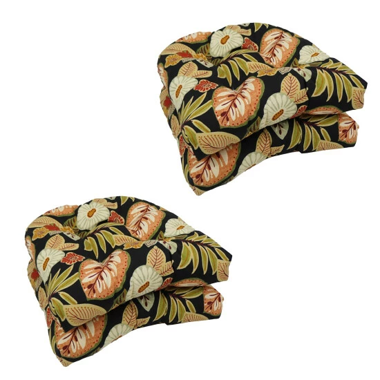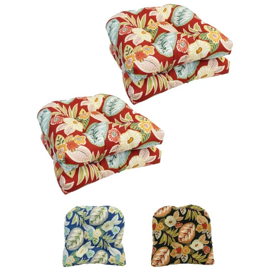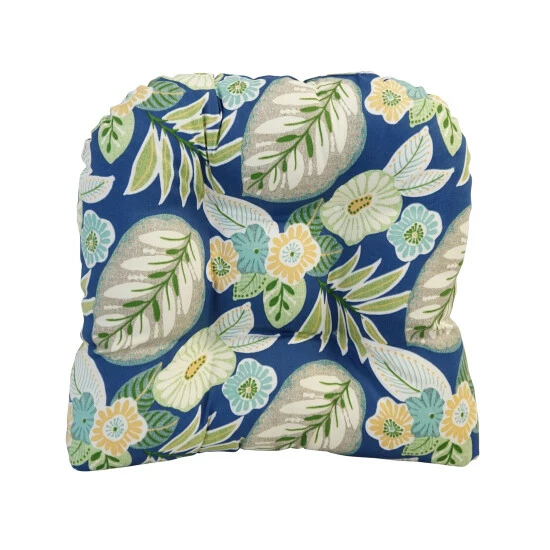 Add a splash of color and style to your home furnishings with these chair cushions. These cushions feature a classic tufted cushion design and are available in a wide variety of striking patterns of UV and weather-resistant spun polyester outdoor fabric.