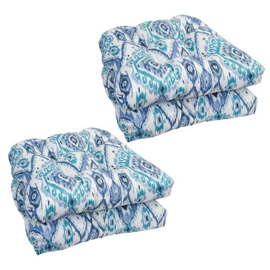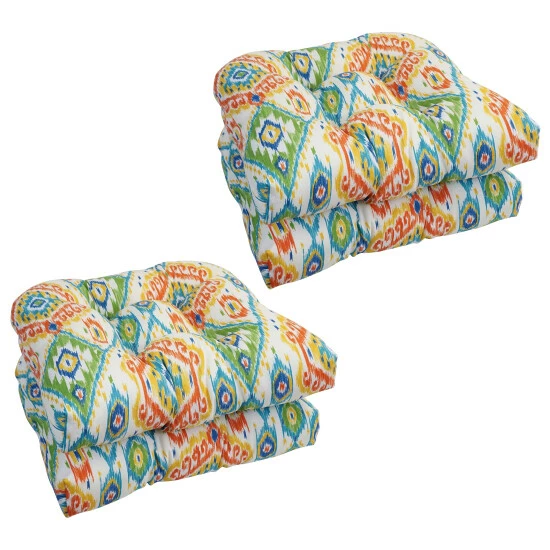 Add a splash of color and style to your home furnishings with these chair cushions. These cushions feature a classic tufted cushion design and are available in a wide variety of striking patterns of UV and weather-resistant spun polyester outdoor fabric.