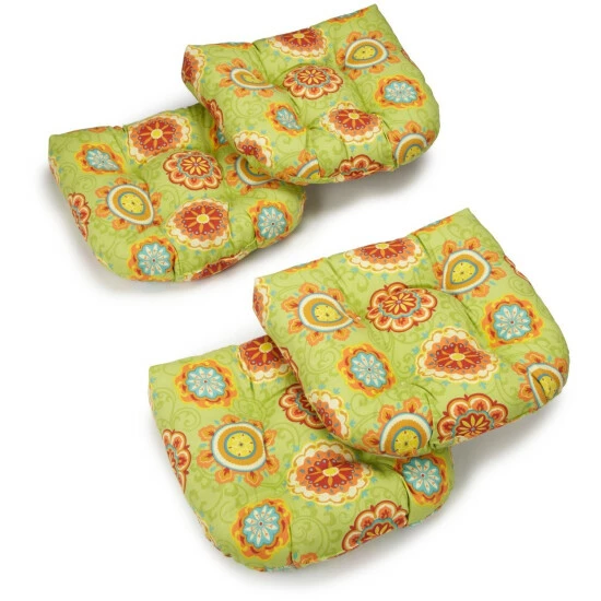 Add a splash of color and extra comfort to your patio chairs or dining chairs with this set of four indoor/outdoor seat cushions. These U-shaped cushions are made of durable, weather-resistant polyester for long-lasting use. The cushions come in your choice of a wide variety of color options.
