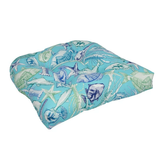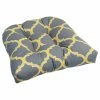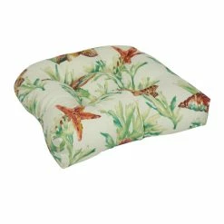 Add a splash of color and style to your home furnishings with this chair cushion. This cushion features a classic tufted cushion design and is available in a wide variety of striking patterns of UV and weather-resistant spun polyester outdoor fabric.