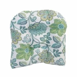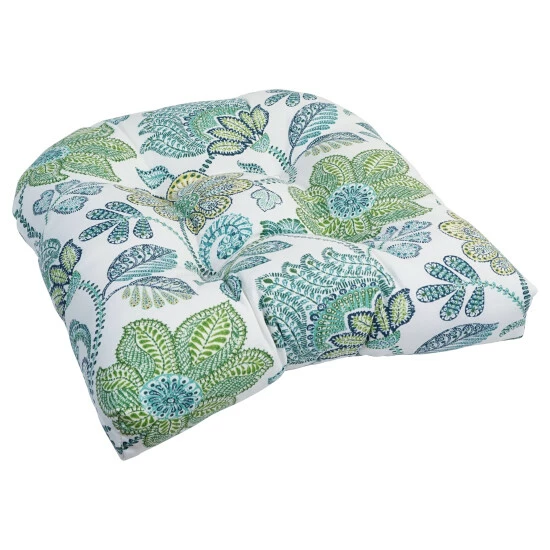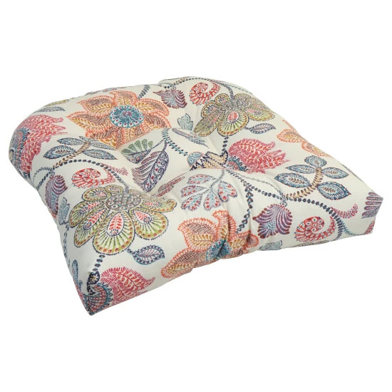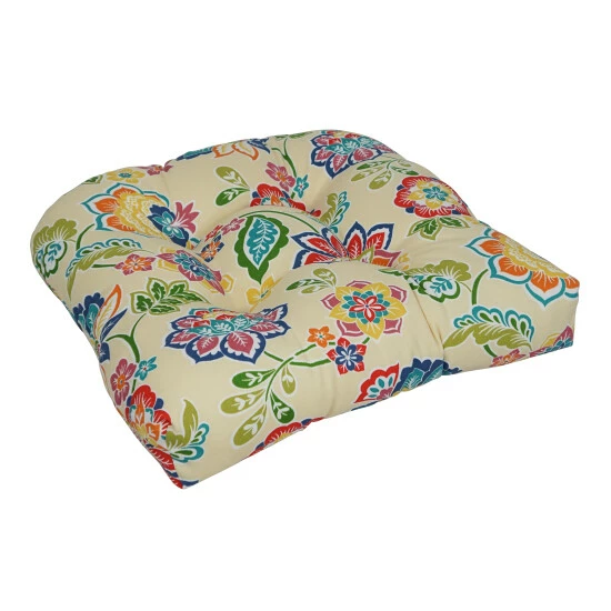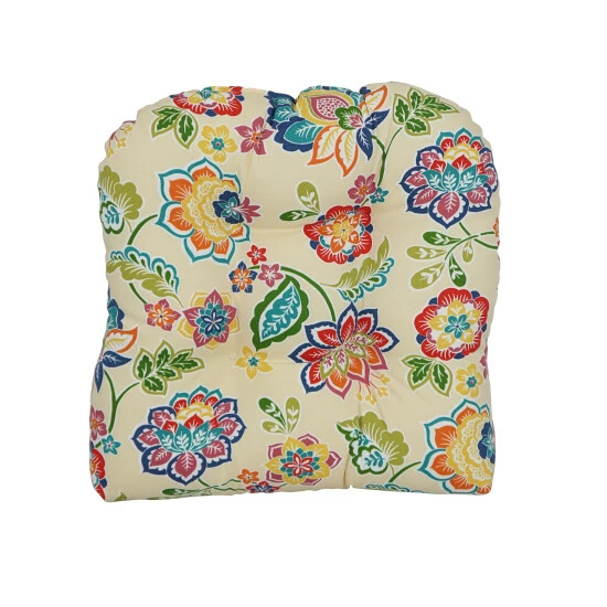 Add a splash of color and style to your home furnishings with this chair cushion. This cushion features a classic tufted cushion design and is available in a wide variety of striking patterns of UV and weather-resistant spun polyester outdoor fabric.