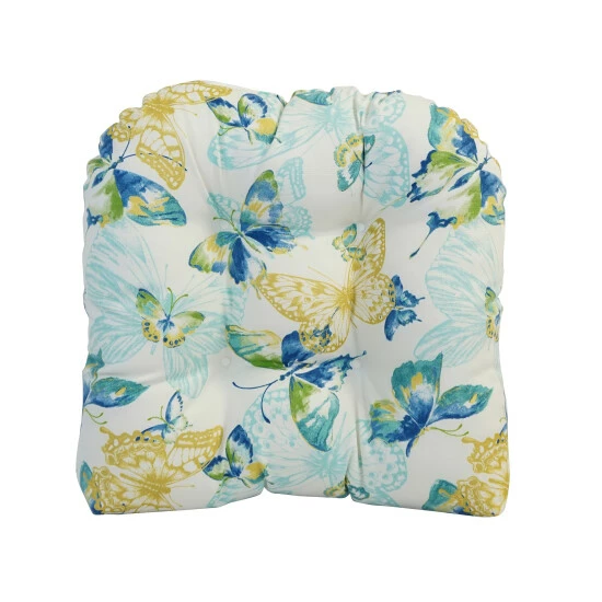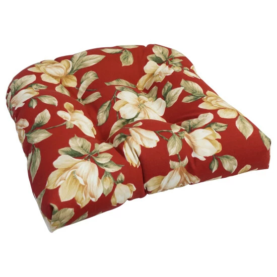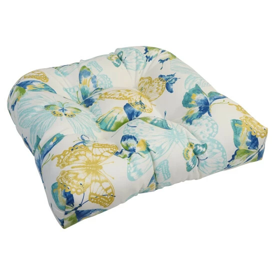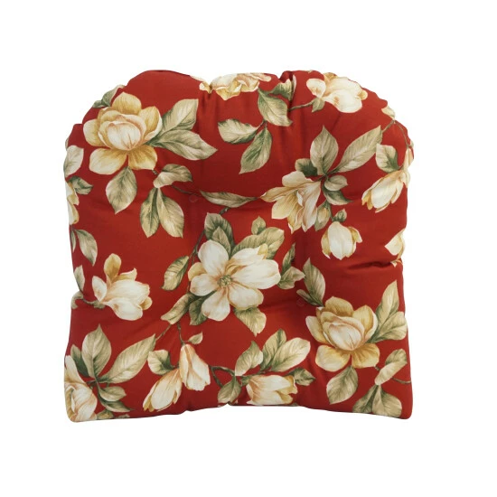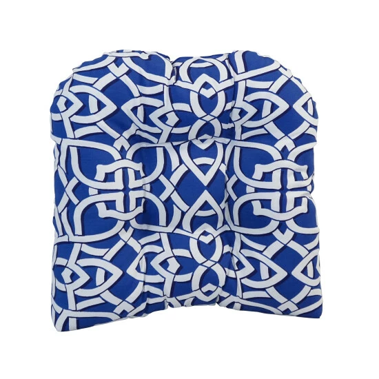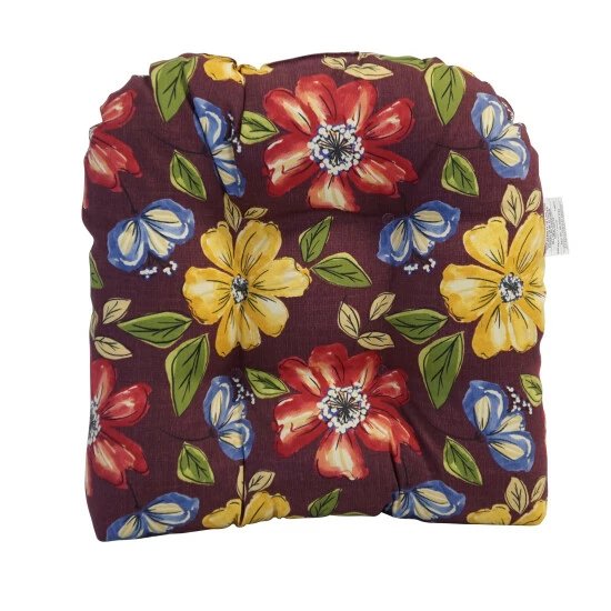 Add a splash of color and style to your home furnishings with this chair cushion. This cushion features a classic tufted cushion design and is available in a wide variety of striking patterns of UV and weather-resistant spun polyester outdoor fabric.