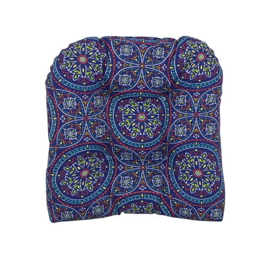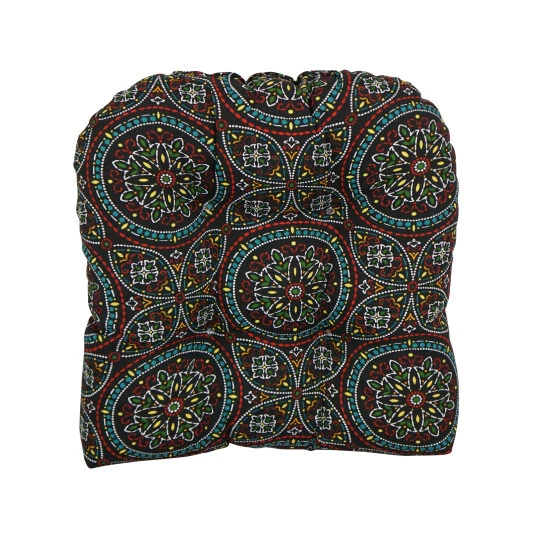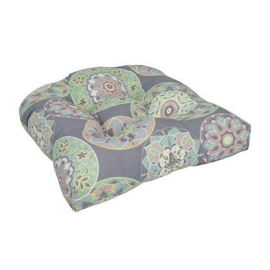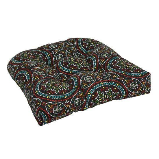 Add a splash of color and style to your home furnishings with this chair cushion. This cushion features a classic tufted cushion design and is available in a wide variety of striking patterns of UV and weather-resistant spun polyester outdoor fabric.