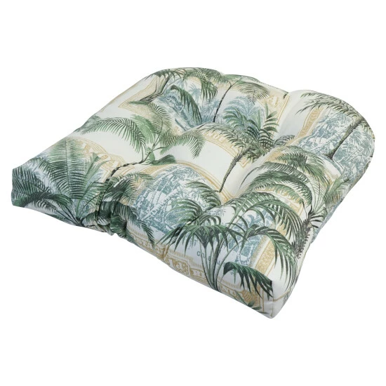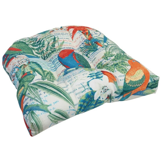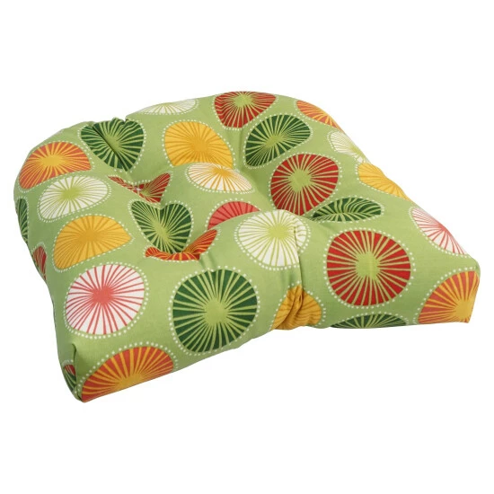 Add a splash of color and style to your home furnishings with this chair cushion. This cushion features a classic tufted cushion design and is available in a wide variety of striking patterns of UV and weather-resistant spun polyester outdoor fabric.
