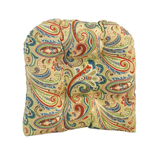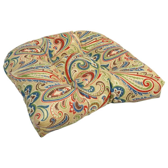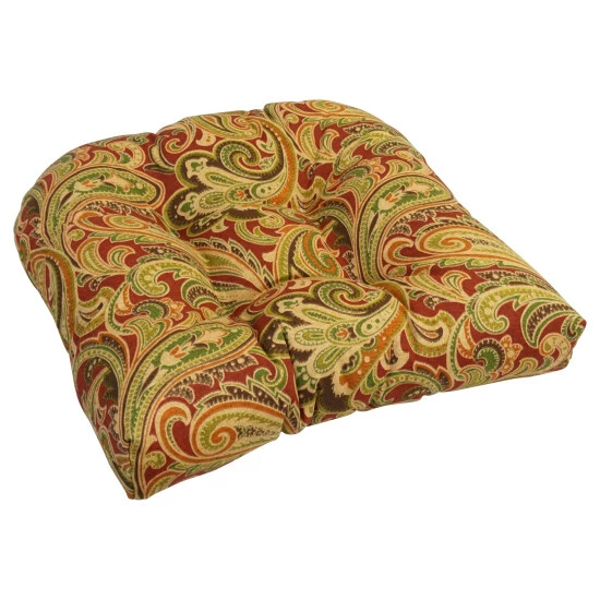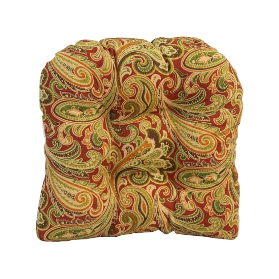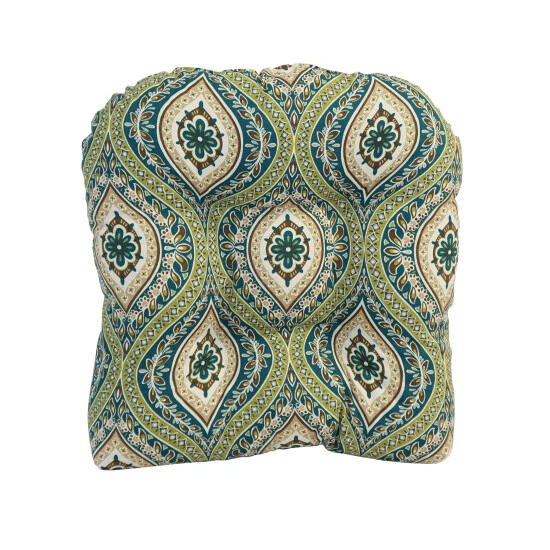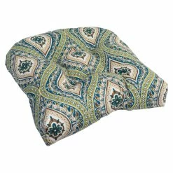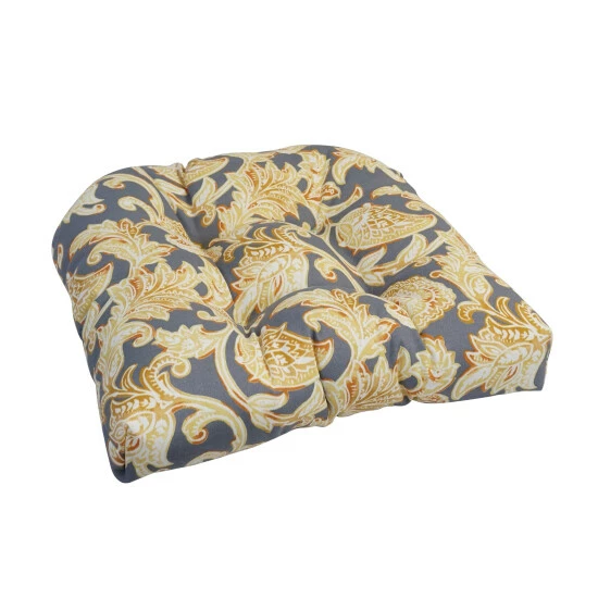 Add a splash of color and style to your home furnishings with this chair cushion. This cushion features a classic tufted cushion design and is available in a wide variety of striking patterns of UV and weather-resistant spun polyester outdoor fabric.