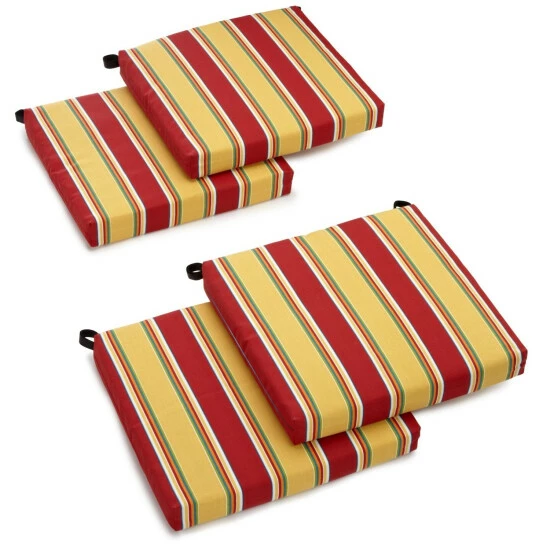 This tough and stylish all-weather four-piece patio chair cushion set is a quick and easy way to add style and comfort to you indoor or outdoor dining chair. Its UV-resistant acrylic fabric endures the variety of elements, for lasting coziness.