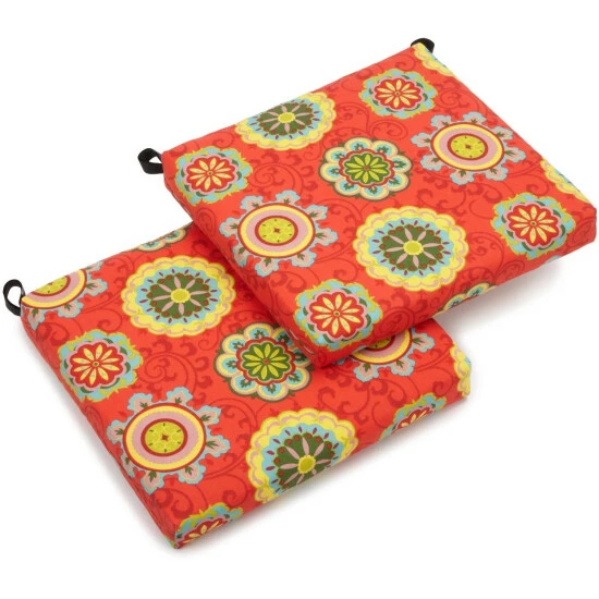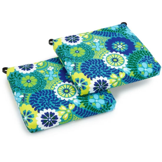 Introduce a pop of refreshing color to your decor with this versatile set of two cushions suitable for both indoor and outdoor use. Made from polyester fabric, these all-weather cushions resist weather and UV rays to reduce fading and other damage. Hook and loop straps ensure easy placement.