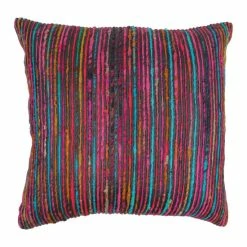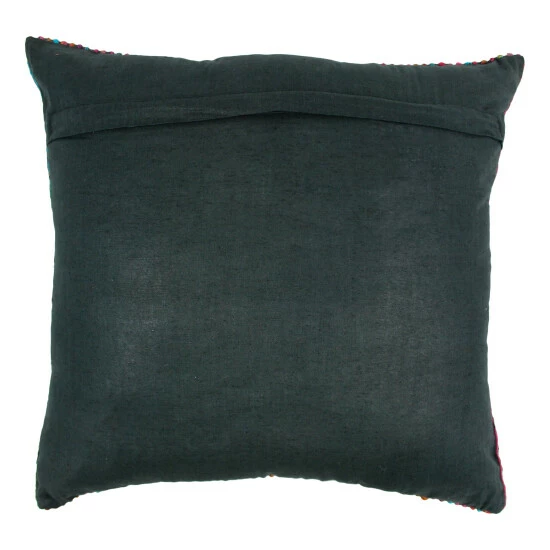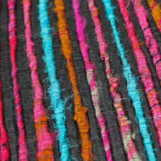 Add a fascinating burst of color to your home decor with the luminous shades of this textured throw pillow. The vibrant rainbow threads contrast the deep black fabric, creating an excellent burst of color.