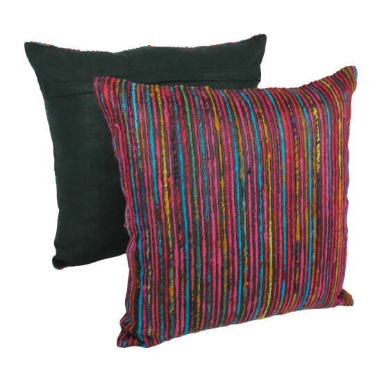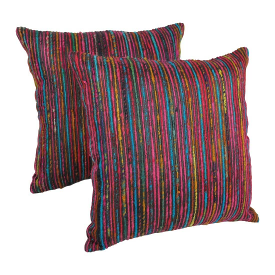 Add a touch of rustic elegance and comfort to your home dΓ©cor with these throw pillows. These throw pillows features a striking, rustic yarn-threaded style and stunning rainbow yarn threading. Includes removable inserts for easy cleaning.