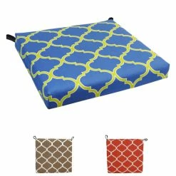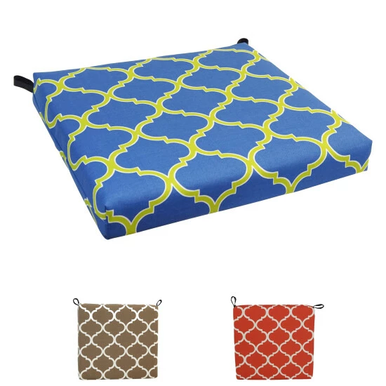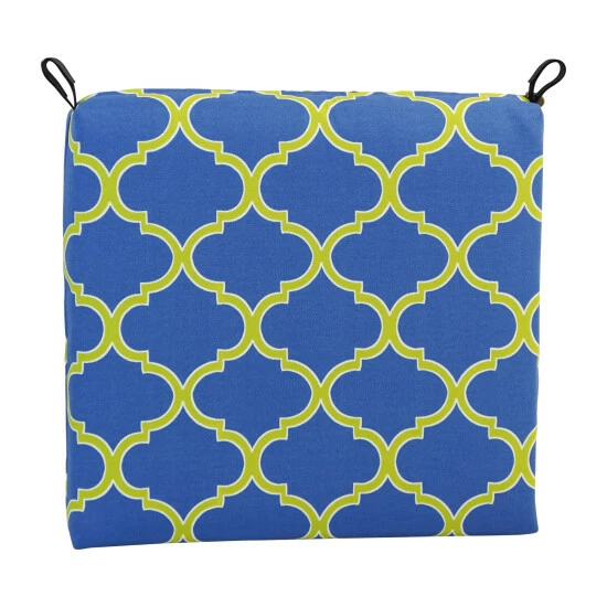 Add a splash of vibrant color and radiant style to your outdoor furnishings with this outdoor chair cushion. This cushion features a classic chair cushion style and is available in a wide variety of striking patterns of spun polyester outdoor fabric.