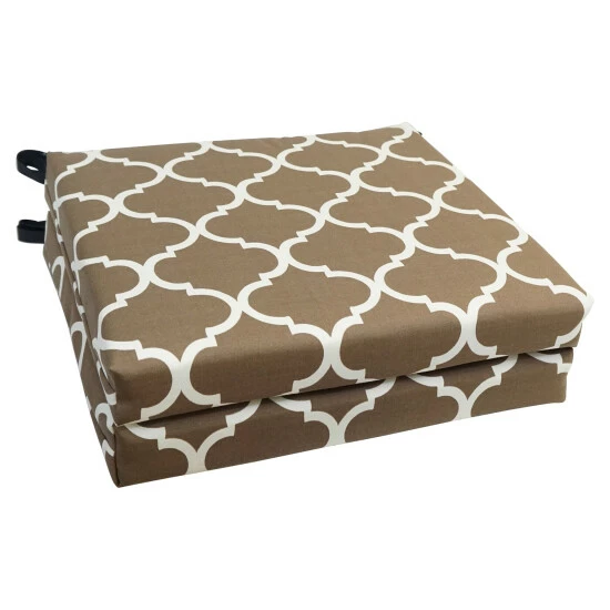 Add a splash of vibrant color and radiant style to your outdoor furnishings with these outdoor chair cushions. These cushions feature a classic chair cushion style and are available in a wide variety of striking patterns of spun polyester outdoor fabric.