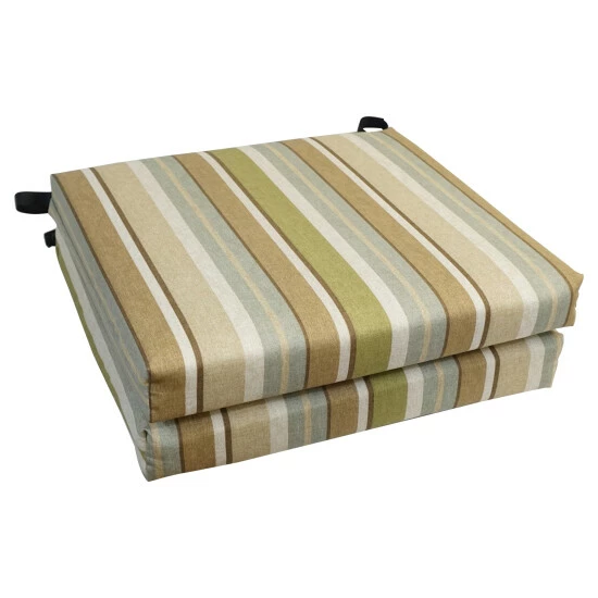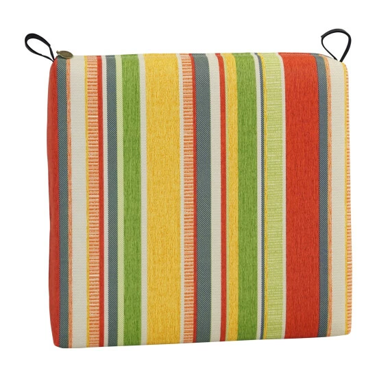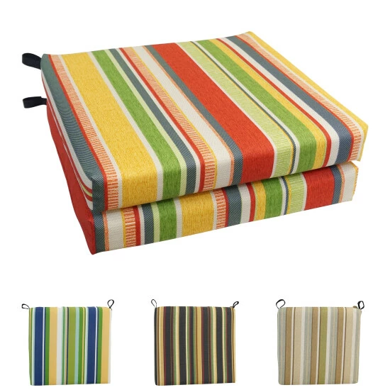 Add a splash of vibrant color and radiant style to your outdoor furnishings with these outdoor chair cushions. These cushions feature a classic chair cushion style and are available in a wide variety of striking patterns of spun polyester outdoor fabric.
