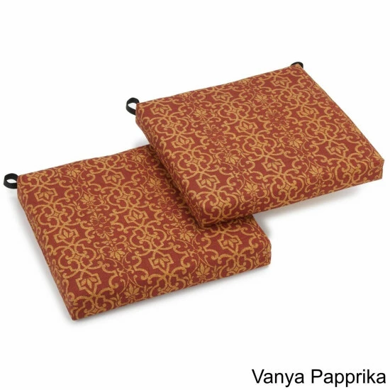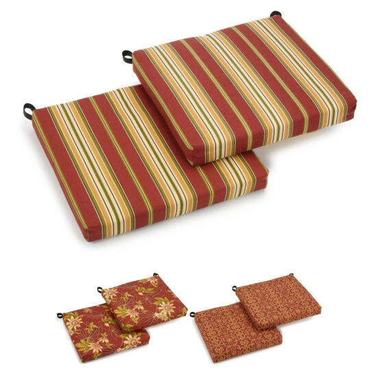 Bring an intriguing pattern and plenty of comfort to your outdoor chairs by adding this set of two 20-inch indoor/outdoor chair cushions from Blazing Needles. Each cushion features rich colors on all-weather, UV-resistant fabrics to last through sunshine and rain without fading. Zippered closures let the covers pop off for easy cleaning.
