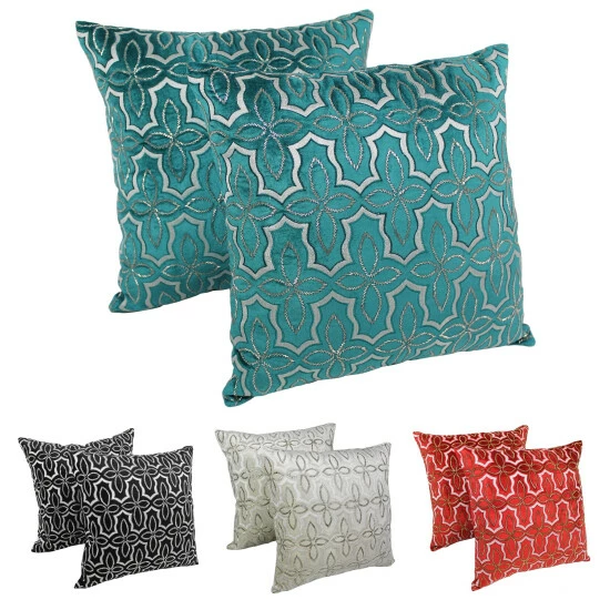 Add a splash of colorful elegance and plush comfort to your home dรฉcor with these throw pillows. These throw pillows feature a striking, hand-sewn velvet beaded construction in your choice of four colors. Includes removable inserts for easy cleaning.
