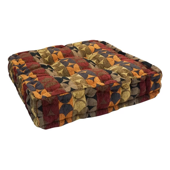 Add a splash of striking color and classic comfort to your indoor furnishings with this floor pillow. This throw pillow features a classic button-tufted design, an elegant corded style, and is covered in soft premium jacquard chenille fabric available in a variety of eye-catching colors.