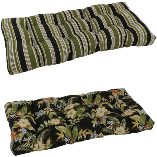 These colorful, patterned tufted cushions fit most standard outdoor loveseats and benches. Constructed of all-weather polyester and polyester fill, these cushions are perfect if your old cushions need replacement, or if you’re just ready for a change. Available in several patterns, the material is UV-resistant, so you can set your furniture in sun or shade.
