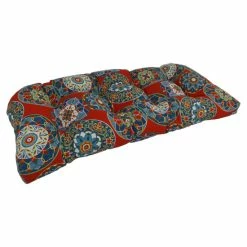 Increase the comfort of your bench with this Blazing Needles cushion. The tufted polyester cushion is filled with eco-friendly polyester for plush comfort. Choose from 23 weather-resistant botanical patterns to complement your outdoor aesthetic.