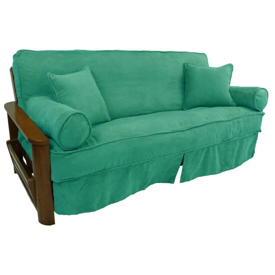 Add a splash of color, comfort, and style to your futon with this futon slip cover set with bolsters and throws, featuring soft premium microsuede fabric in your choice of a variety of colors. This cover fits 8 to 10-inch thick futon mattresses.
