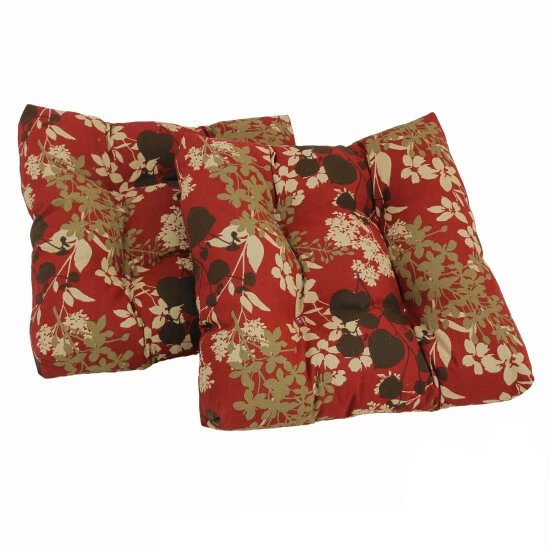 This set of two square outdoor chair cushions is a stylish andcomfortable addition to any compatible patio furniture set. Thesecushions feature all-weather, UV-resistant spun polyester fabric.