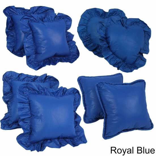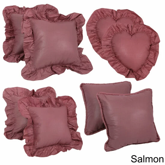 - Set includes: Two (2) 12-inch ruffle-corded pillows, two (2) 14-inch ruffle-corded pillows, two (2) ruffled heart throws, two (2) 14-inch tube-corded pillows