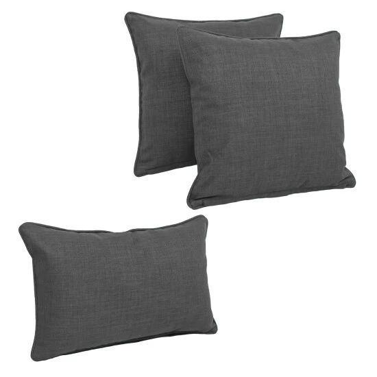 Refresh the look of your outdoor patio furniture or indoor sofa with this set of three throw pillows. Crafted with solid-spun polyester and soft polyester fill, these throw pillows with removable covers feature corded edging for a classy look that dresses up your furnishings right away.