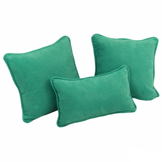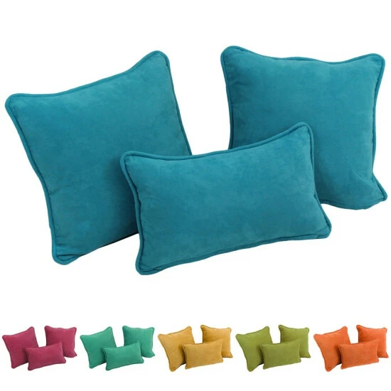 Jazz up your room with this three-piece set of indoor pillows. In a choice of lively, on-trend colors with soft microsuede fabric, this set offers style and comfort. Each cushion includes a hidden zipper for easy insert removal and a substantial fill for support. The set comprises of two throws and one lower-back support pillow.