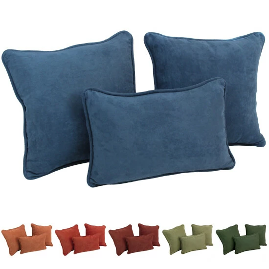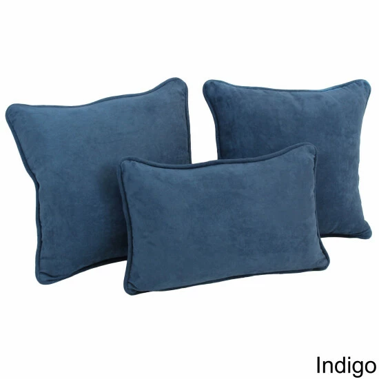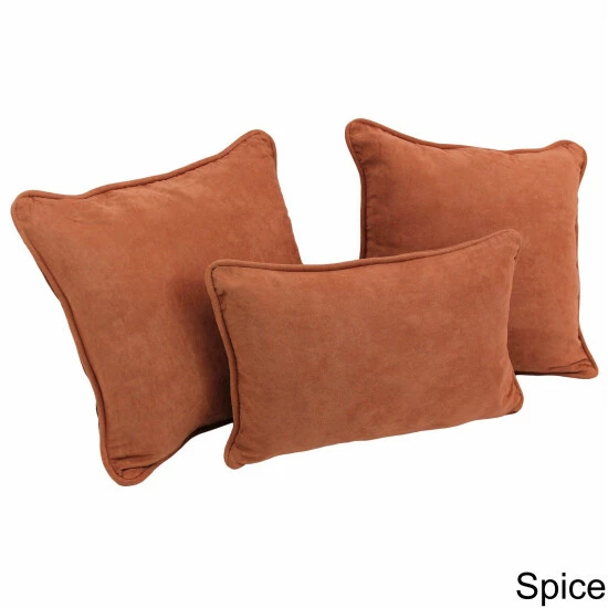 Boost the comfort of your seating with this set of three Delaney throw pillows. Choose from pretty colors to complement your living room furnishings, then luxuriate in the softness of the microsuede fabric covers and down-like denier microfiber fill. With two square accent pillows and a longer bolster pillow, this set provides a quick, easy, and cohesive way to decorate.