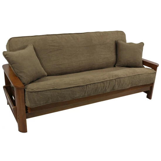 Transform the look of your futon from bed to comfortable seating with the addition of this three-piece cover set. The premium microsuede fabric cover has double-corded edges for greater durability, and it’s sized to fit various mattress thicknesses for versatility. This cover comes with two coordinating throw pillows for added comfort.