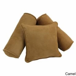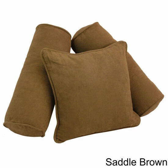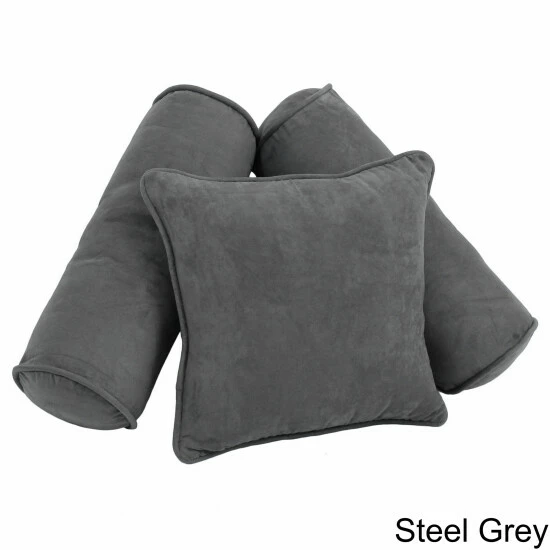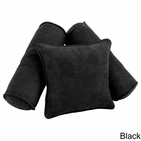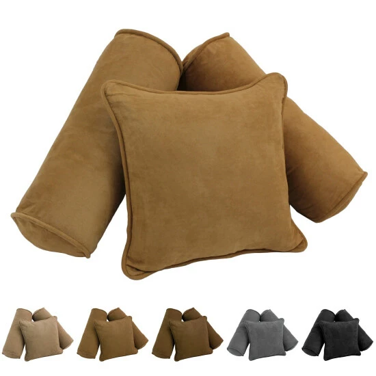- Set includes: Two (2) microsuede bolster pillows, one (1) microsuede throw pillow