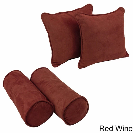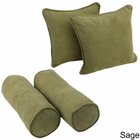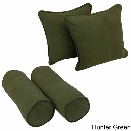 - Set includes: Two (2) microsuede throw pillows, two (2) bolster pillows