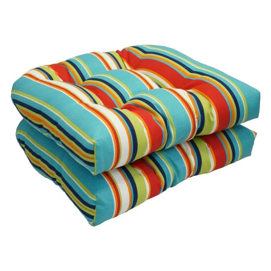 Bring vibrance and fun to your outdoor entertaining area with this set of two replacement chair cushions from Blazing Needles. Available in your choice of eye-commanding prints, these cushions are tufted to keep the fill inside from shifting and bunching, adding to their overall comfort factor. These weather-resistant covers ensure the cushions’ long-lasting performance.
