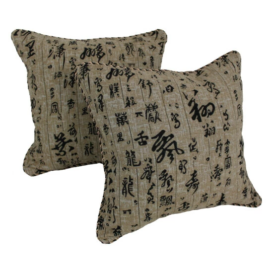 Add a bit of Oriental charm to your office or home with these Chinese character-patterned pillows by Blazing Needles. The 18 by 18 inch-square pillows are large enough to comfortably pad your back or head while you read or watch television. The corded, edged pillows have a grey background, with black and soft white characters.
