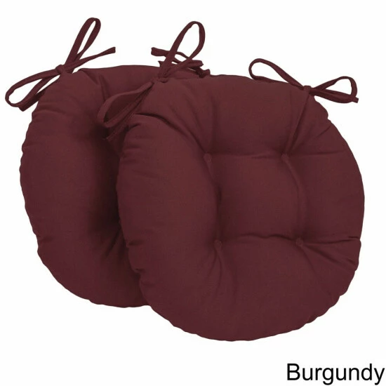 Boost the comfort of round-seated chairs with this Blazing Needles chair cushion set. Crafted of twill fabric, these cushions offer classic tufting for just the right amount of seating comfort. Both cushions are identical and they can be secured to chairs using the attached fabric ties.